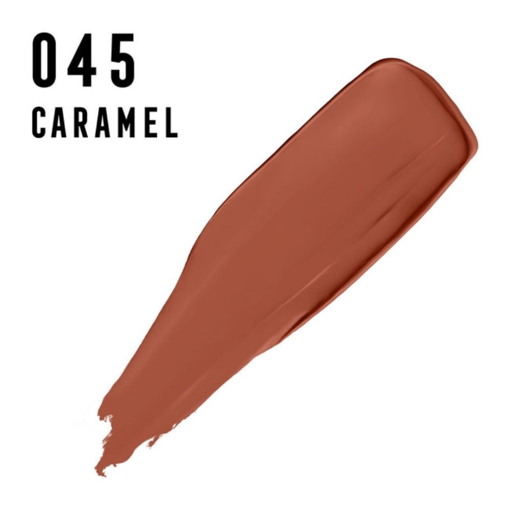 أحمر شفاه ماكس فاكتور كولور إليكسير مات بوليت - لون الكراميل 45، هو أحمر شفاه غني مطفي بلون الكراميل الدافئ، يمنحك لونًا كثيفًا مخمليًا بتركيبة ناعمة لا تسبب الجفاف. غني بمكونات مرطبة، يوفر تغطية كاملة مع الحفاظ على نعومة وراحة الشفاه. يدوم طويلًا، ويمنح لمسة نهائية مطفية أنيقة تُبرز جمال الشفاه وتمنحها مظهرًا طبيعيًا وناعمًا.