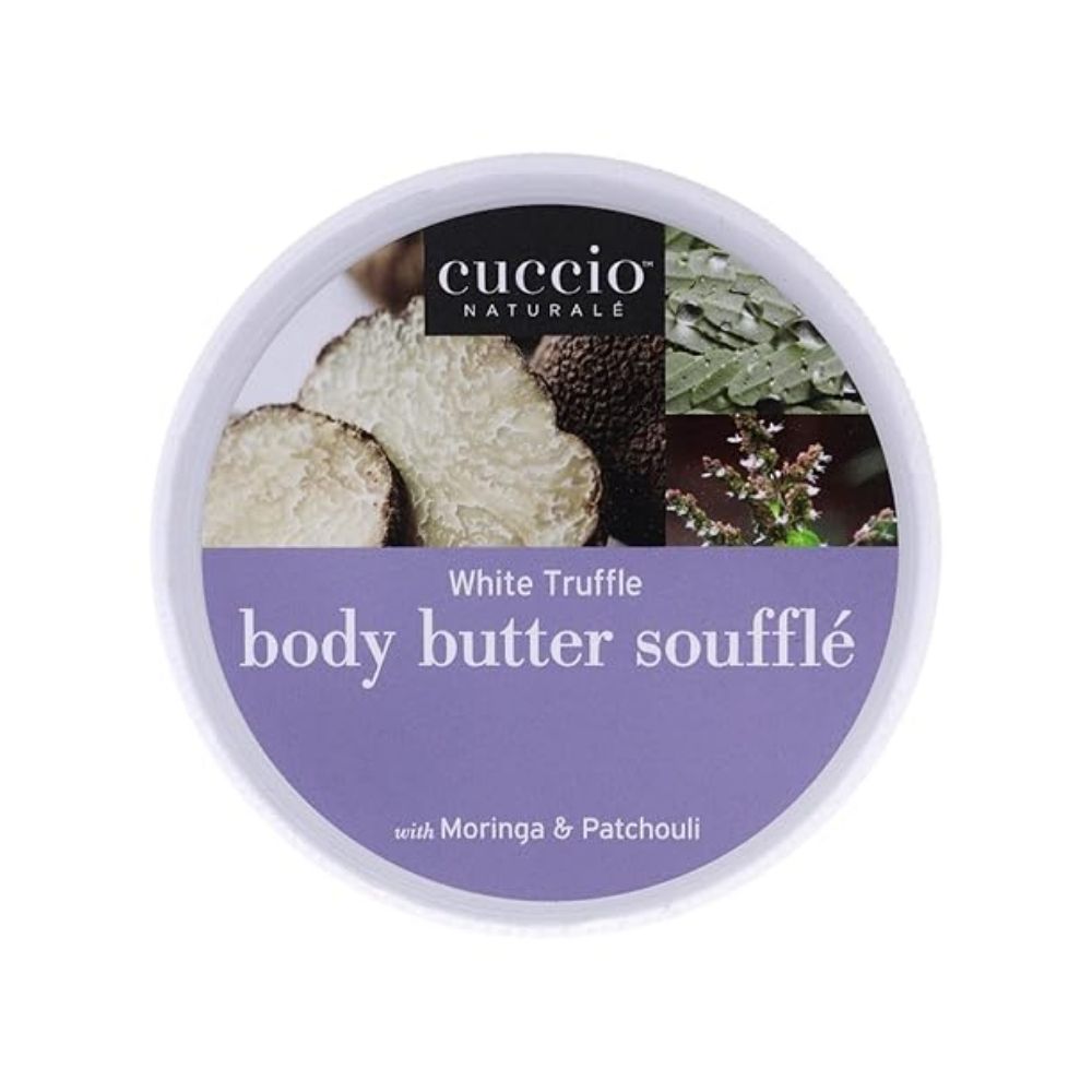 سوفليه زبدة الجسم بالكمأة البيضاء من كوتشيو، ٨ أونصات، هو علاج فاخر للجسم غني بخلاصة الكمأة البيضاء النادرة والراقية. قوامه المخملي الغني ينساب على البشرة، فيمنحها ترطيبًا وتغذية مكثفة، ويمنحها لمسة نهائية ناعمة كالحرير، بينما يغلف الجسم بعطر ترابي رقيق. مثالي لتدليل البشرة الجافة أو المتعبة، هذا السوفليه الفاخر يرتقي بالعناية اليومية بالبشرة إلى مستوى من الرفاهية، ويتركها ناعمة ومشرقة برائحة فاخرة، ليمنحك تجربة سبا فاخرة في راحة منزلك.