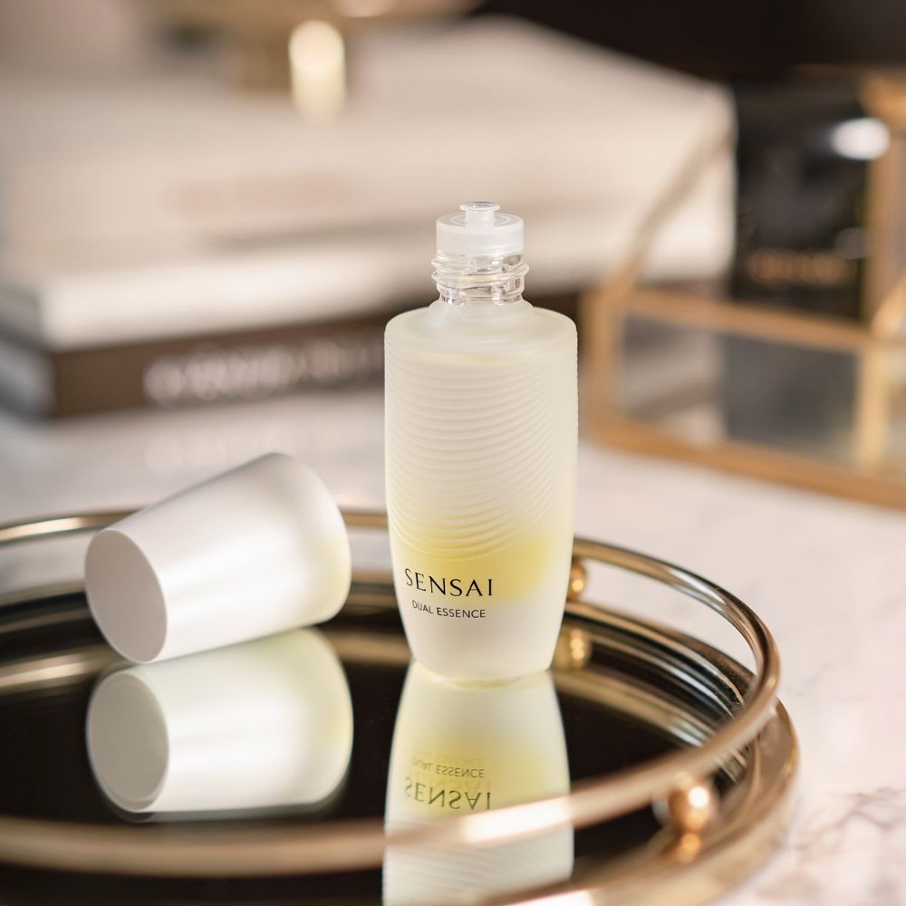 سينساي دوال إيسنس 30 مل هو سيروم فريد من نوعه ثنائي المراحل، يجمع بين غنى الزيت ونضارة الجوهر، مُعزز بخلاصة كويشيمارو سيلك إي إكس والزيوت النباتية. بمجرد مزجه، يتحول إلى إكسير حريري يغذي البشرة بعمق، ويجدد ترطيبها، ويعيد مرونتها. يُعزز سينساي دوال إيسنس إشراقة البشرة الطبيعية، ويُنعم ملمسها، ويعزز حاجزها الواقي، ليتركها ناعمة كالحرير، مشرقة، وشبابية.