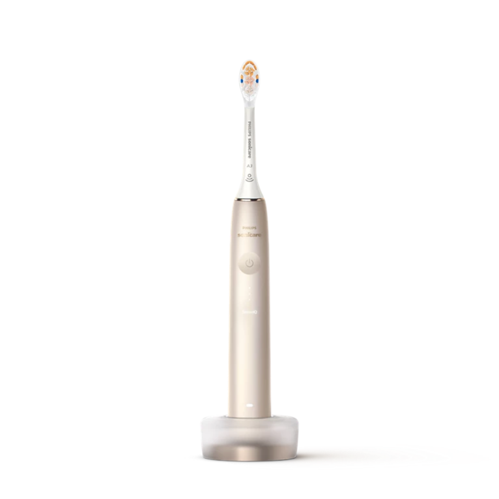 تتميز فرشاة الأسنان Philips Sonicare Prestige SenseIQ Premium Champagne بنفس تقنية SenseIQ المتطورة الموجودة في إصدار Midnight Blue، ولكنها مصممة بلمسة نهائية بلون الشمبانيا الراقي لمن يفضلون مظهرًا أكثر نعومةً وأناقة. بفضل قدرتها على استشعار سلوكيات تنظيف الأسنان والتكيف معها فورًا، توفر تنظيفًا مخصصًا بكل معنى الكلمة، حيث تزيل ما يصل إلى 20 ضعفًا من البلاك مقارنةً بفرشاة الأسنان اليدوية، مما يقلل من انحسار اللثة ويعزز البياض الطبيعي للأسنان. تتضمن رؤوس فرشاة فاخرة مصممة لأداء متعدد الفوائد، مما يضمن حماية اللثة وإزالة البقع ومنع التسوس في آن واحد. مقبضها النحيف متوازن هندسيًا لتوفير الراحة، بينما تجعلها لمستها النهائية الفاخرة إضافة أنيقة لأي حمام عصري. بفضل بطارية تدوم طويلًا وحقيبة سفر صحية، صُممت هذه الفرشاة لمن يبحثون عن الأناقة والأداء في روتينهم اليومي.