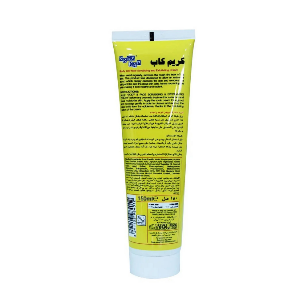 كريم كاب مقشر للوجه والجسم ١٥٠ مل، مقشر لطيف وفعال، مُركّب من بذور المشمش، والصبار، وفيتامين هـ، مُصمّم لإزالة خلايا الجلد الميتة، وفتح المسام، وتجديد البشرة. تركيبته المُغذّية تُنعّم البشرة الخشنة، وتُعزّز الدورة الدموية، وتتركها ناعمة ومشرقة ومنتعشة. مناسب للاستخدام اليومي أو الأسبوعي، يُعزّز صفاء البشرة ويحافظ على نضارتها وإشراقتها.