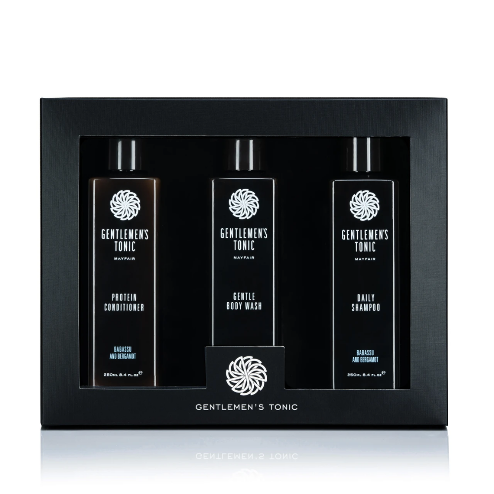 جينتلمنز تونيك جروومينج باباسو وبرغموت مجموعة هدية للاستحمام (شامبو ٢٥٠مل + بلسم ٢٥٠مل + غسول ٢٥٠مل)