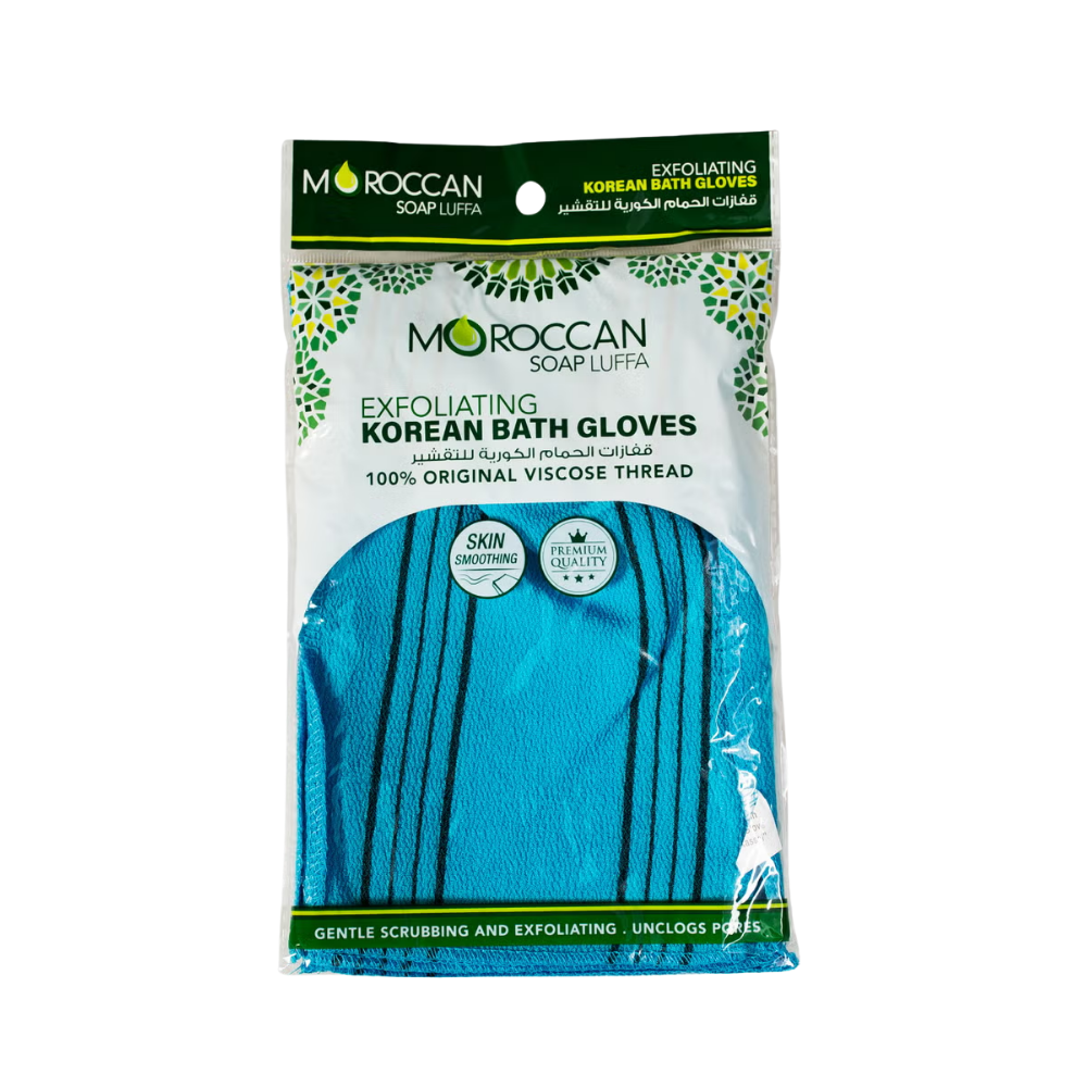 قفازات الاستحمام الكورية المقشرة من موركان أويل - باللون الأزرق، هي قفازات ذات ملمس مزدوج مصممة لتجربة استحمام فعالة ومنعشة. يوفر الجانب الخشن تقشيرًا عميقًا، حيث يزيل خلايا الجلد الميتة ويحسن الدورة الدموية، بينما يقوم الجانب الناعم بتلميع البشرة وتنعيمها بلطف. تتميز القفازات الزرقاء بملاءمتها المريحة لليدين، مما يوفر تحكمًا ودقة لتقشير كامل الجسم. صُممت هذه القفازات للاستخدام مع الصابون أو الزيوت أو غسول الجسم، وتترك البشرة منتعشة وناعمة وجاهزة لامتصاص أفضل للمرطبات، مما يجعل التنظيف اليومي عمليًا وفاخرًا في آن واحد.