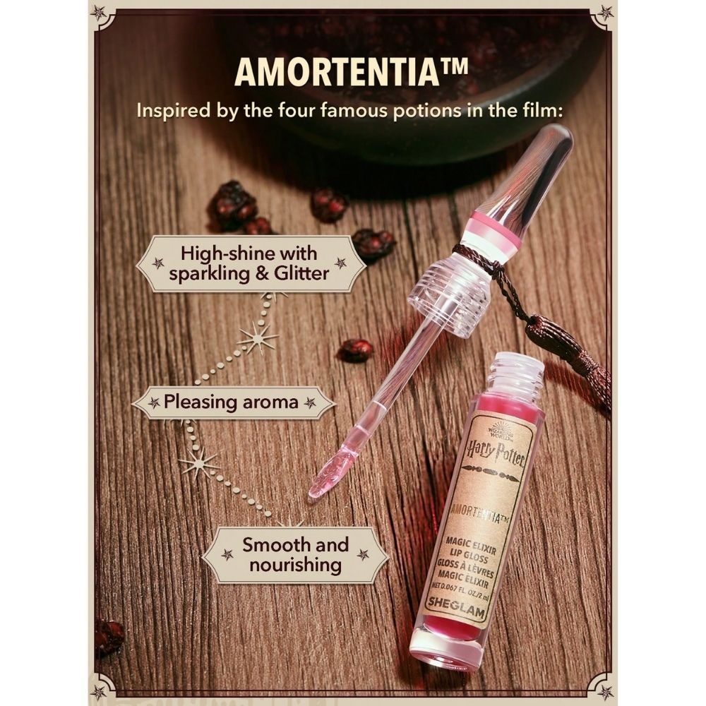 Sheglam Harry Potter Magic Elixir Lip Gloss – Amortentia is a magical, shimmering lip gloss that delivers high-shine color with nourishing, hydrating properties. Infused with skin-friendly ingredients, it ensures lips remain soft, smooth, and radiant while enhancing natural contours. Amortentia adds a luminous, enchanting finish, making lips appear fuller and more vibrant, perfect for whimsical or statement-making makeup looks inspired by the Harry Potter universe.