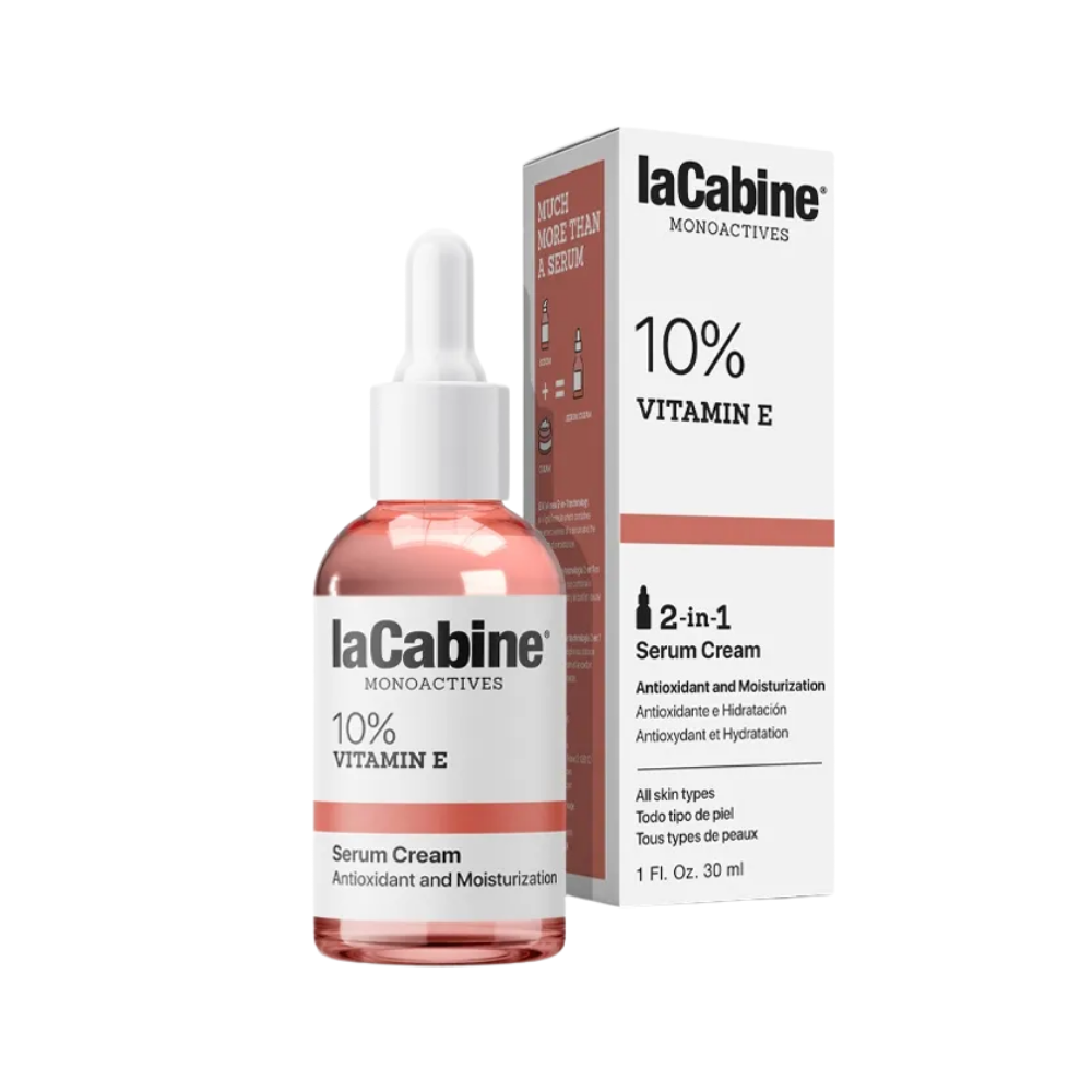 laCabine MonoActive 10% Vitamin E Serum Cream 30ml is a nourishing face treatment that combines the richness of a cream with the potency of a serum. Infused with 10% pure vitamin E, a powerful antioxidant, it protects against oxidative stress, soothes inflammation, and supports skin repair. The formula also contains hydrating agents and emollients that restore softness, reduce dryness, and maintain the skin’s natural barrier. With its dual-action texture, it provides deep nourishment while enhancing long-term resilience, leaving the skin feeling supple, comforted, and visibly healthier with a radiant, youthful glow.