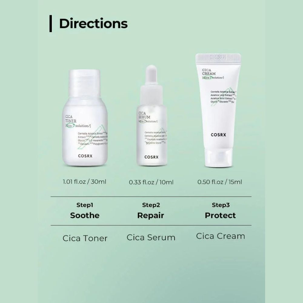 - Pure Fit Cica Serum (10ml): Delivers concentrated calming and barrier-repair actives for rapid relief and skin recovery.