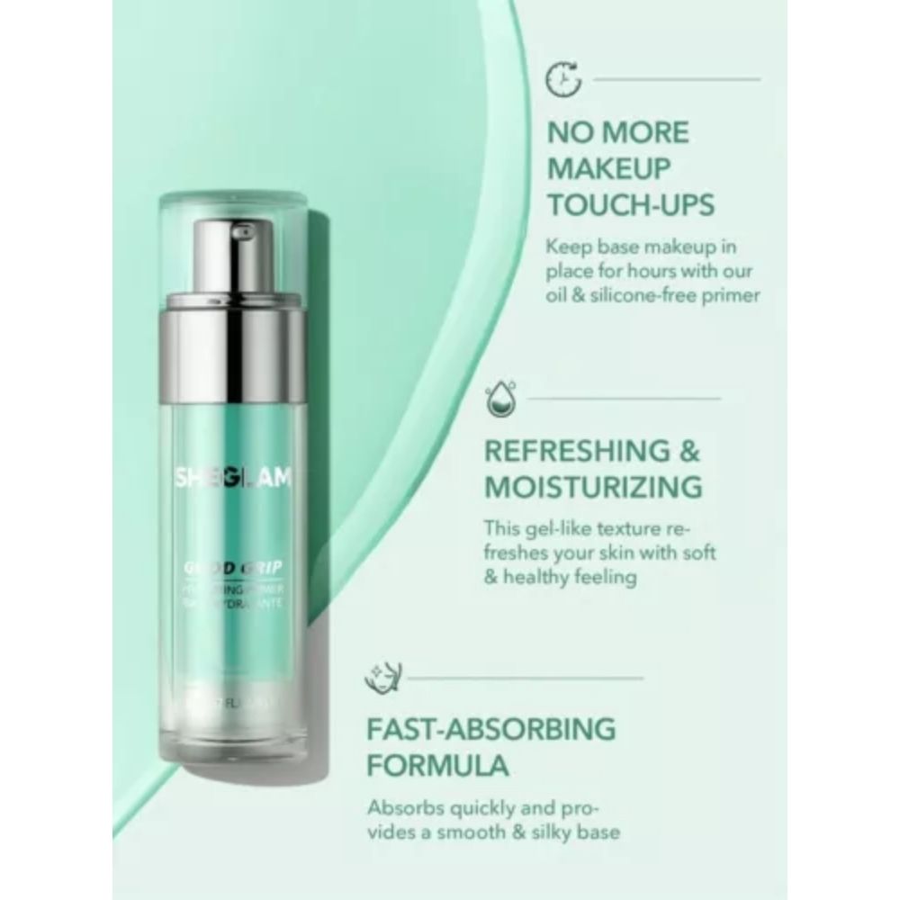 Sheglam Good Grip Hydrating Primer is a luxurious base that preps and nourishes the skin while enhancing makeup longevity. Infused with hydrating ingredients, it smooths the complexion, minimizes the appearance of pores, and creates a soft, velvety canvas for foundation application. Lightweight and non-greasy, it improves makeup adherence, ensuring a flawless, even finish that feels comfortable, hydrated, and radiant throughout the day.