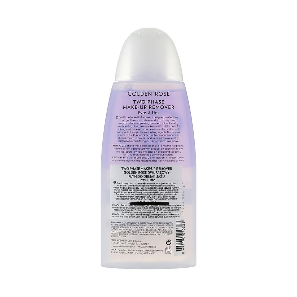 This dual-action makeup remover is specially developed for effective and gentle removal of waterproof and long-lasting makeup, including stubborn mascara and matte lip products. The bi-phase formula combines an oil phase to dissolve heavy makeup and a water phase to sweep away residues without greasy after-feel. Shake to activate before use. Enriched with soothing and conditioning agents, it also cares for the delicate eye area and lashes, reducing the risk of irritation. Suitable for all skin types and contact lens wearers, it leaves skin feeling soft, clean, and refreshed.