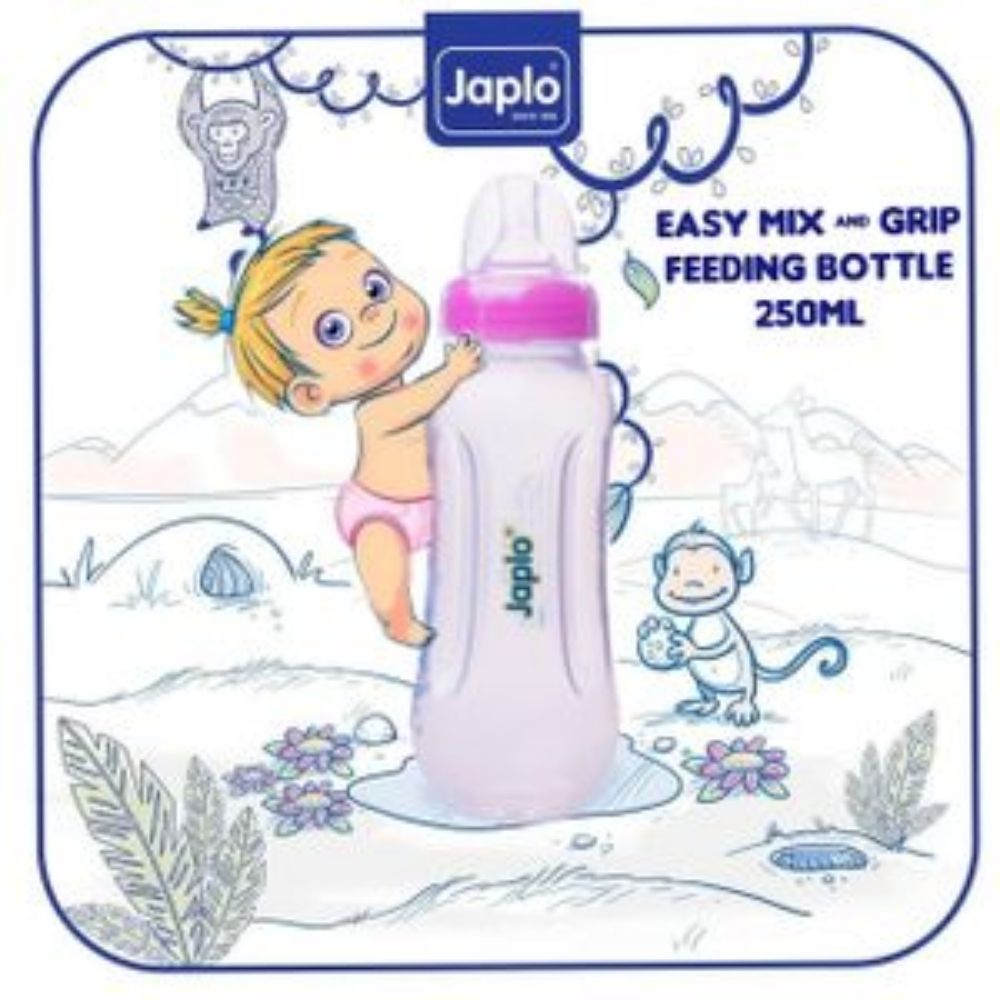 Japlo Easy Grip Mix Feeding Bottle 250ml provides a larger capacity while keeping the same ergonomic design for comfortable use. Japlo Easy Grip Mix Feeding Bottle 250ml is made from BPA-free, reliable plastic and shaped with an easy-grip structure to support independent feeding. Its size is suitable for older infants and longer feeding sessions. Practical, lightweight, and hygienic, this bottle ensures safety and comfort while making feeding times convenient for both baby and parent.
