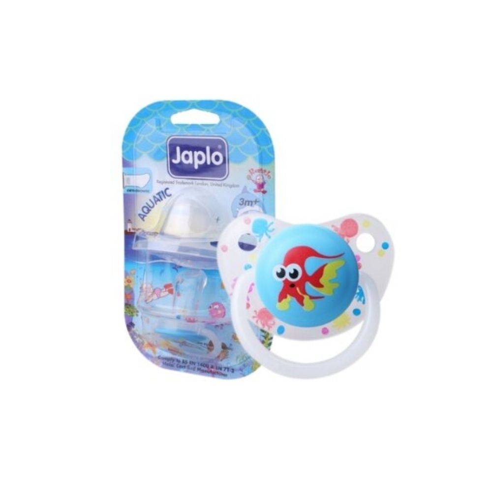 Japlo Aquatic Orthodontic AQ29 with Cover is an advanced pacifier created to combine safety, comfort, and developmental benefits for infants. Made from high-quality, BPA-free materials, it ensures hygienic use and durability. The orthodontic nipple promotes correct oral and jaw development, while the ergonomic handle provides easy handling for parents. The included protective cover keeps it clean, making it a practical, soothing, and visually appealing pacifier ideal for calming and comforting babies.