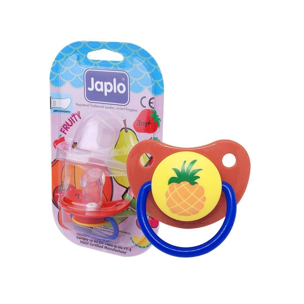 Japlo Fruity Orthodontic FT29 with Cover is an advanced pacifier designed to combine developmental benefits with safety and comfort. Constructed from BPA-free, non-toxic materials, it ensures complete hygiene and reliability. The orthodontic nipple promotes correct oral and jaw development, while the ergonomic handle allows for easy management by parents. Its durable build and protective cover make it a long-lasting, soothing, and visually appealing pacifier, ideal for calming infants during sleep, play, or teething.