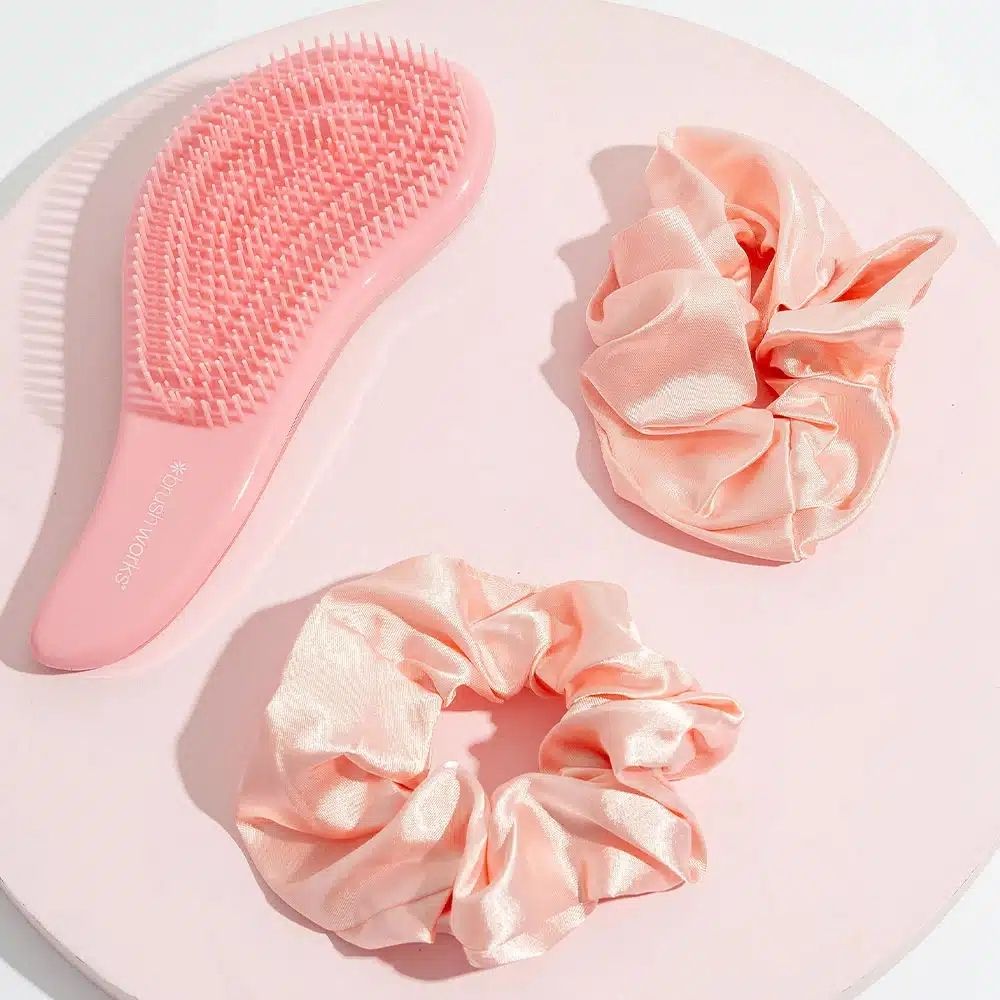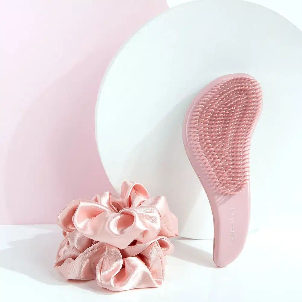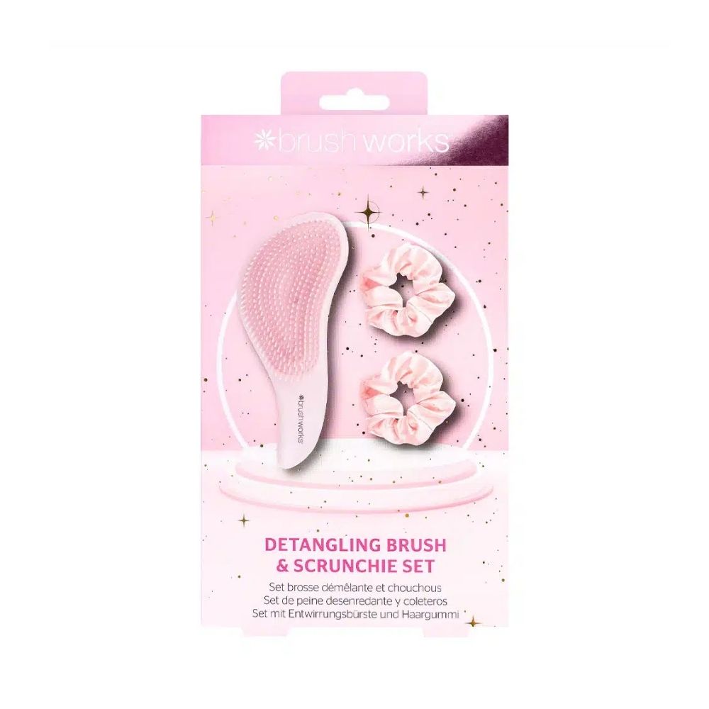 Brushworks Detangling Brush & Scrunchie Set is a complete hair care set combining a flexible detangling brush with a soft satin scrunchie. Brushworks Detangling Brush & Scrunchie Set gently removes knots while protecting hair from breakage. Regular use enhances hair smoothness, shine, and manageability. The scrunchie secures hair comfortably without leaving dents. This set provides an effective and stylish solution for everyday hair care.