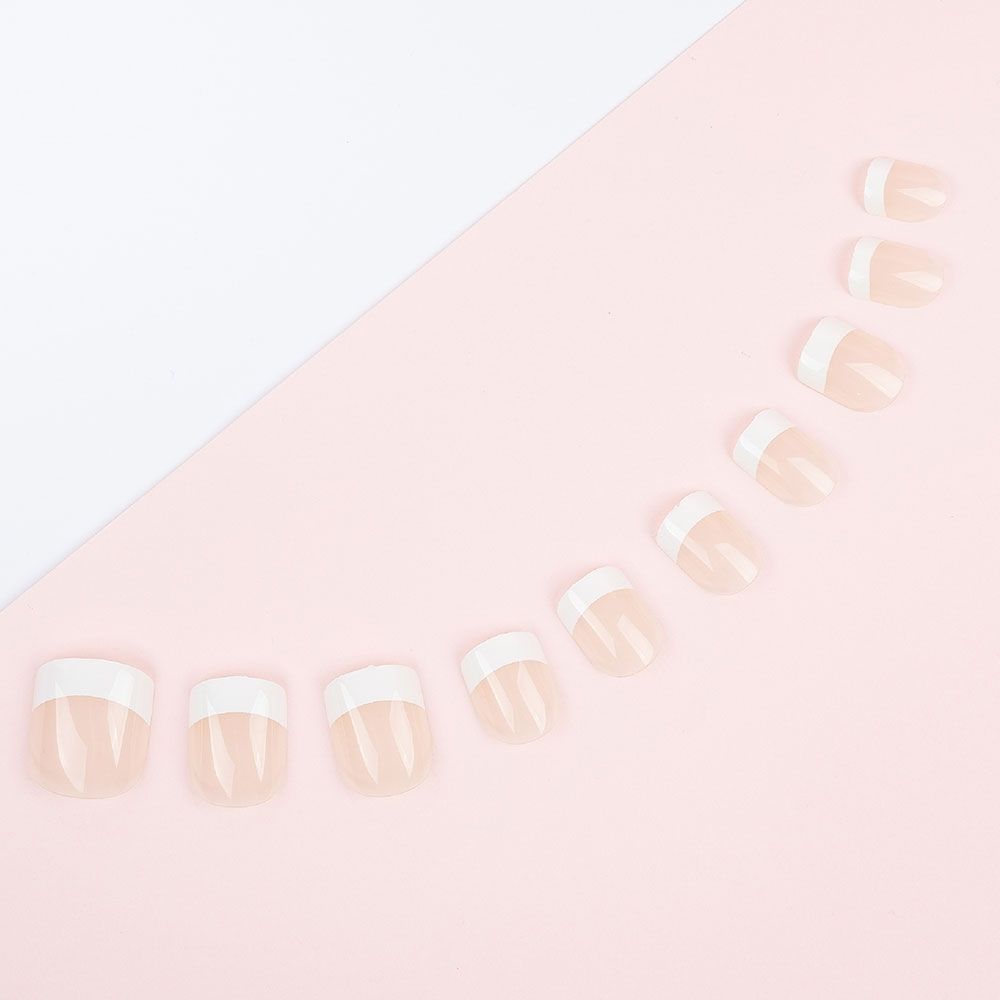 Invogue French Bare Square Nails are classic artificial nails with a square shape and subtle French tips for an elegant, timeless look. Invogue French Bare Square Nails feature a smooth, durable surface for long-lasting wear and effortless application. Regular use maintains neat, polished nails suitable for any occasion. The square design offers versatility for both professional and creative manicure styles. These nails provide a sophisticated, refined finish.