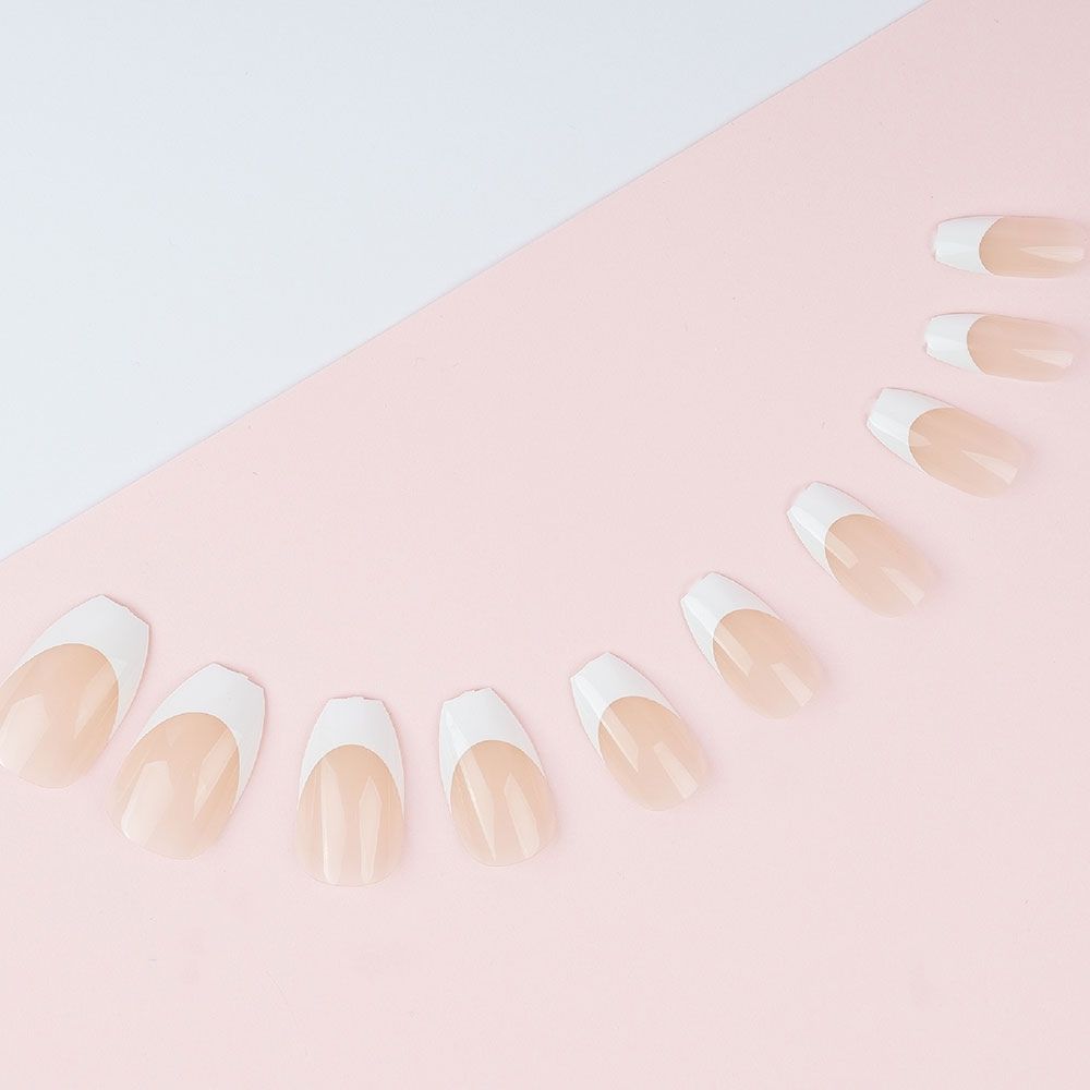 Invogue French Bare Coffin Nails are designed for those who love a subtle and natural manicure with a chic edge. Featuring a coffin shape with a French bare nude finish, they provide an understated elegance that suits any style. Made from high-quality, durable material, these nails offer long-lasting wear while maintaining comfort, giving your hands a flawless and sophisticated look effortlessly.