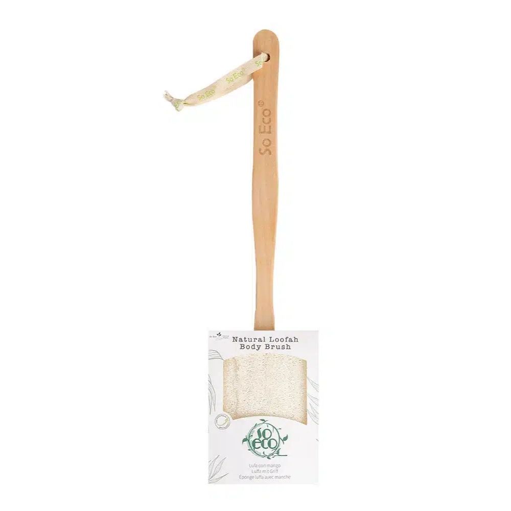 So Eco Natural Loofah Back & Body Brush is a sustainable tool combining a natural loofah with a long-handled brush for deep cleansing and exfoliation. So Eco Natural Loofah Back & Body Brush removes dead skin, stimulates circulation, and revitalizes the skin. Regular use helps maintain smooth, soft, and healthy-looking skin. Its ergonomic handle ensures comfort and extended reach. The eco-friendly design supports sustainable bath practices.