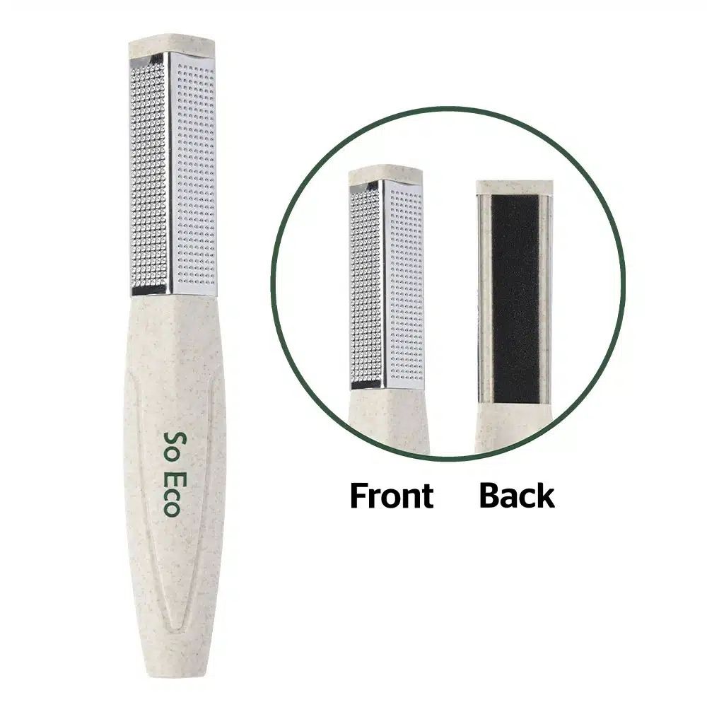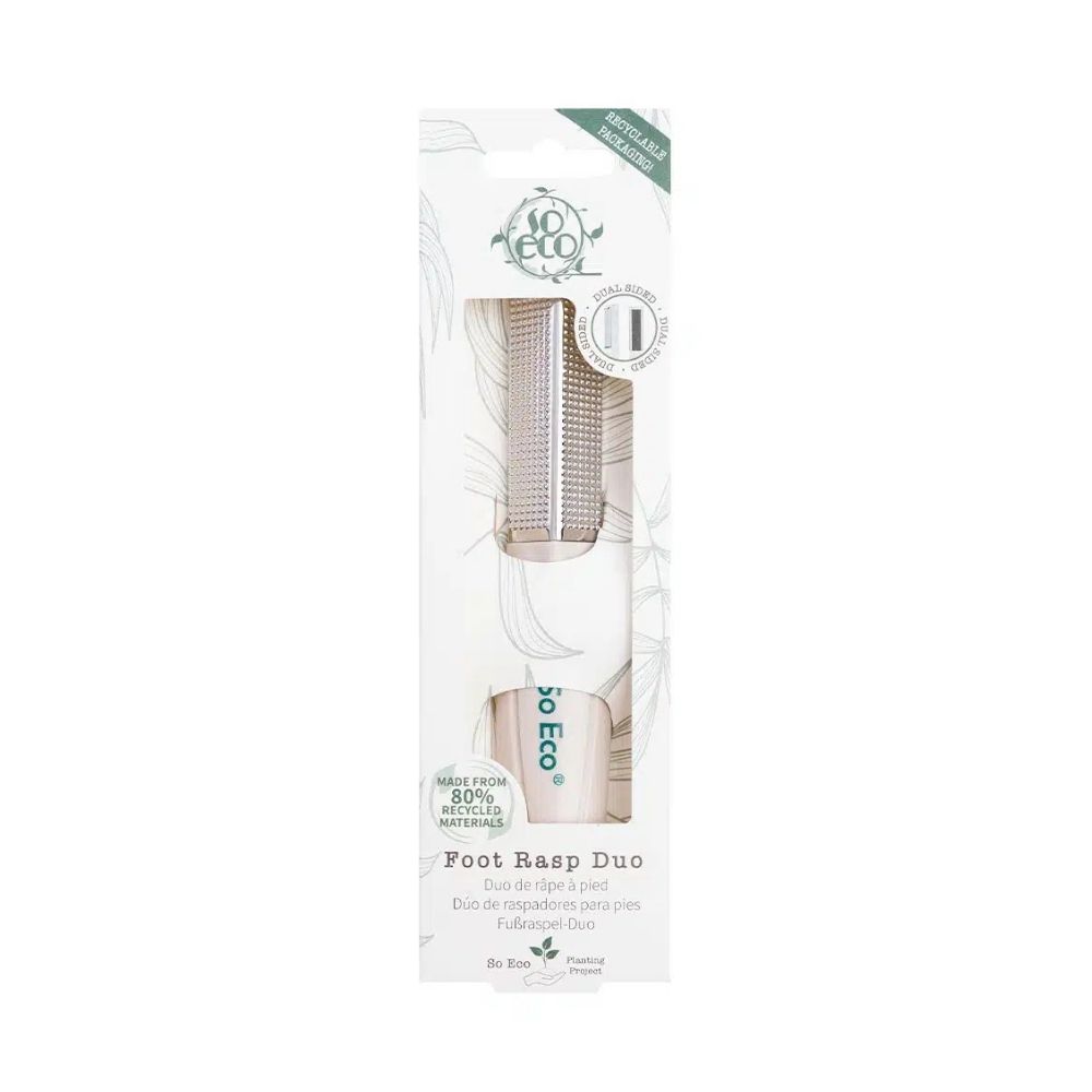 So Eco Biodegradable Foot Rasp Duo is a practical and eco-friendly pedicure tool set designed to keep feet smooth and healthy. Made from sustainable, biodegradable materials, the duo features two different abrasive surfaces for gentle exfoliation and more intensive callus removal. Ergonomically shaped for a comfortable grip, it allows precise control while working on heels, toes, and soles. This sustainable foot care solution ensures effective results while being kind to the environment.