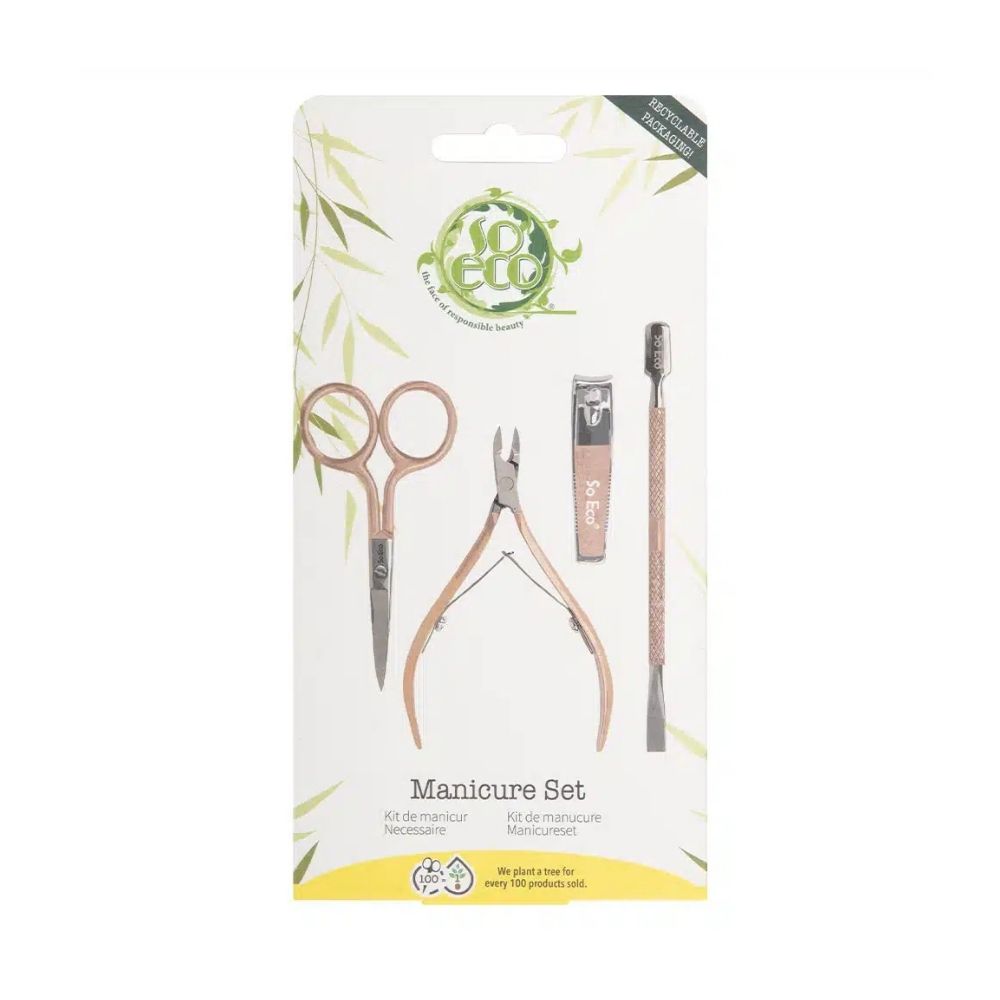 So Eco Manicure Pedicure Set is a comprehensive grooming kit featuring high-quality tools made from eco-friendly and durable materials. Designed to cover all nail care needs, the set includes clippers, scissors, files, and other essentials for shaping, trimming, and polishing nails. Ergonomically designed for comfort and precision, this set is perfect for at-home or travel use. With its sustainable design and versatility, the So Eco Manicure Pedicure Set ensures complete, professional-quality nail care.