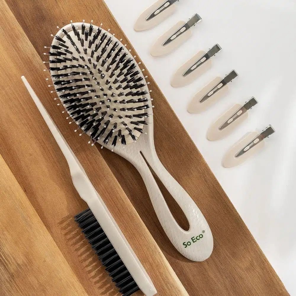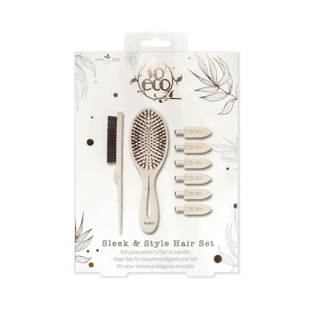 So Eco Sleek & Style Hair Set is a complete styling kit designed for those who want smooth, polished, and healthy-looking hair. It combines eco-friendly tools that are crafted from sustainable materials with innovative designs to achieve salon-quality results at home. Each item in the set helps with detangling, smoothing, and styling, making it suitable for all hair types and textures. Lightweight, durable, and comfortable to use, the tools are gentle on both the hair and scalp. With So Eco Sleek & Style Hair Set, you can enjoy effortless styling while making a positive impact on the environment, blending beauty with responsibility.