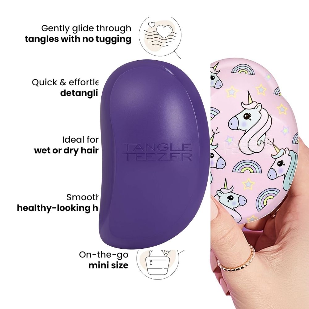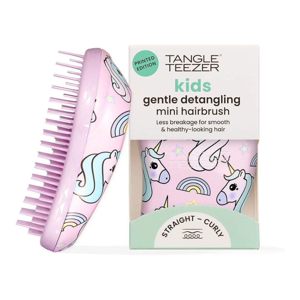 Tangle Teezer Small Original Children’s Unicorn Multi is a vibrant, multi-colored detangler designed to appeal to kids while delivering the same proven two-tier tooth performance as the classic Original. The soft, spaced teeth remove knots carefully and reduce tension on fragile hair, helping to preserve natural texture and shine. Lightweight and travel-friendly, this fun, multi-unicorn brush encourages independent grooming and is ideal for backpacks, sports bags, or bedside drawers.