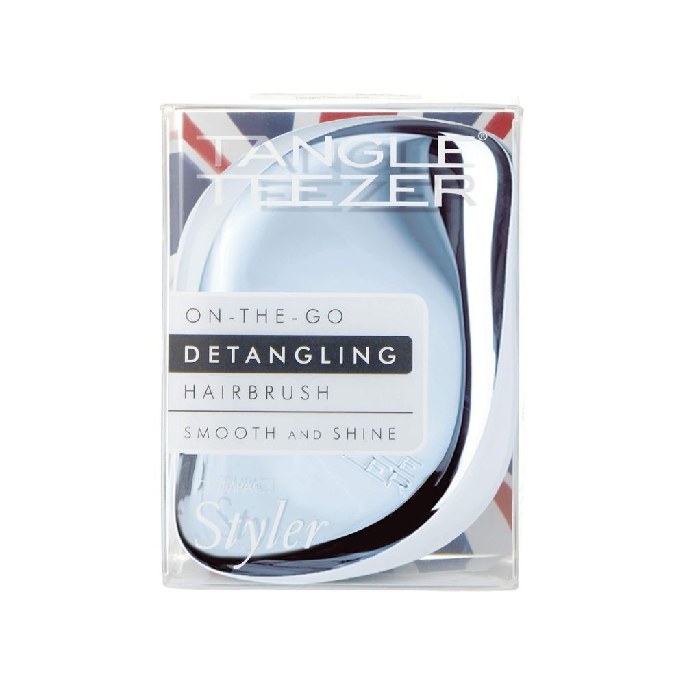 Tangle Teezer Compact Styler Baby Blue Chrome is a sleek and portable detangling brush featuring the brand’s patented two-tier teeth that glide through knots effortlessly while protecting hair from breakage. Its compact size makes it ideal for travel or everyday use, and the chrome baby blue finish adds a modern, stylish touch. Tangle Teezer Compact Styler Baby Blue Chrome ensures smooth, tangle-free hair quickly and efficiently, making it perfect for maintaining healthy, glossy strands on the go.