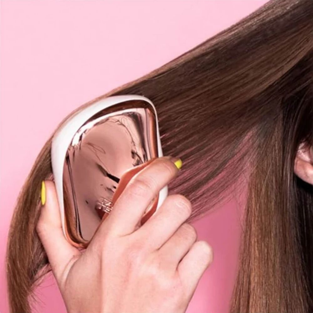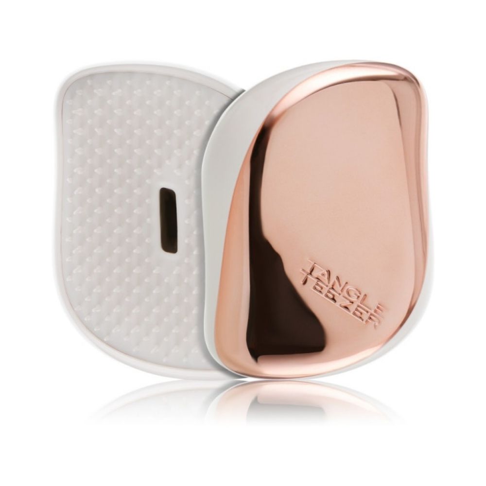 Tangle Teezer Compact Styler Cream Rose Gold is an elegant, portable detangling brush designed with the brand’s patented two-tier teeth to remove tangles efficiently without pulling or damage. Its cream rose gold finish gives it a luxurious and stylish look, while the compact size allows for easy travel and everyday use. Lightweight and ergonomic, it ensures comfortable handling and smooth detangling for wet or dry hair, reducing frizz and leaving hair glossy and manageable. Tangle Teezer Compact Styler Cream Rose Gold combines sophistication, convenience, and high-performance haircare.