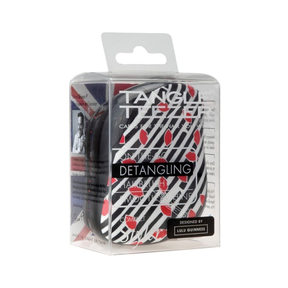 Tangle Teezer Compact Styler Lulu Guinness Lips Design is a fun and portable detangling brush featuring the signature two-tier teeth that glide through tangles effortlessly, reducing pulling and breakage. Its unique Lulu Guinness lips print adds a fashionable and playful aesthetic, making it a standout accessory for travel or everyday use. Lightweight and ergonomic, it easily fits in handbags or backpacks, delivering smooth, shiny, and manageable hair while keeping grooming fun and stylish. Tangle Teezer Compact Styler Lulu Guinness Lips Design merges convenience, performance, and bold design in one compact brush.