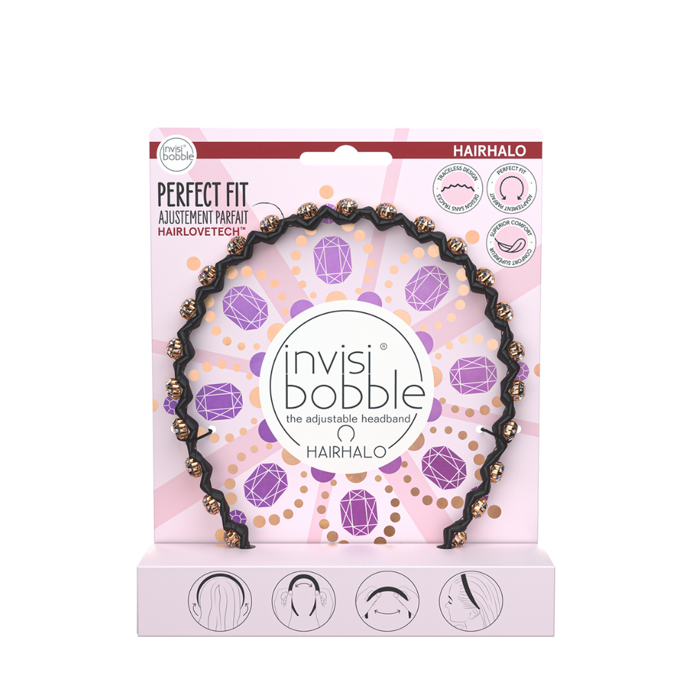 Invisibobble Hairhalo British Royal Put Your Crown On is a premium adjustable headband designed to combine regal elegance with everyday comfort, featuring Invisibobble’s unique HAIRLOVETECH™ material that ensures a strong yet gentle hold without causing pressure or headaches, while its luxurious royal-inspired design adds a touch of sophistication, making it perfect for both casual styling and special occasions.