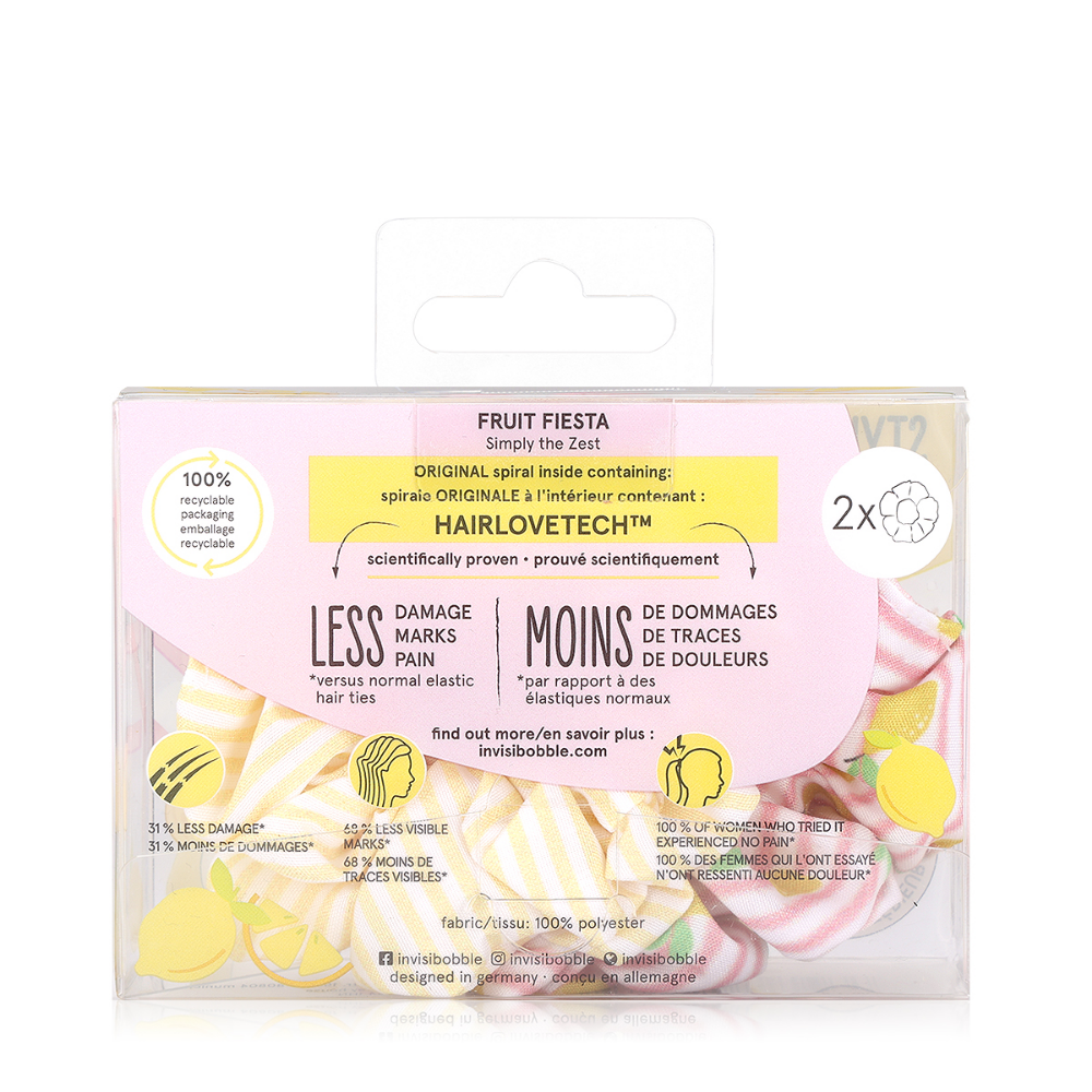 Invisibobble Sprunchie Fruit Fiesta Simply the Zest is another citrus-themed accessory from the Fruit Fiesta collection, embodying the lively spirit of sunny days and fresh fruit-inspired fashion. With its playful orange design, this sprunchie brightens hairstyles while ensuring comfort and hair protection. Its integrated spiral keeps hair in place without snagging or causing dents, while the fabric overlay brings a touch of personality and style. Perfect for festivals, picnics, or casual summer wear, this sprunchie allows you to make a bold statement while enjoying Invisibobble’s signature benefits of no pain, no damage, and no marks. Stylish enough to wear on the wrist, it is the ultimate blend of fashion and function.