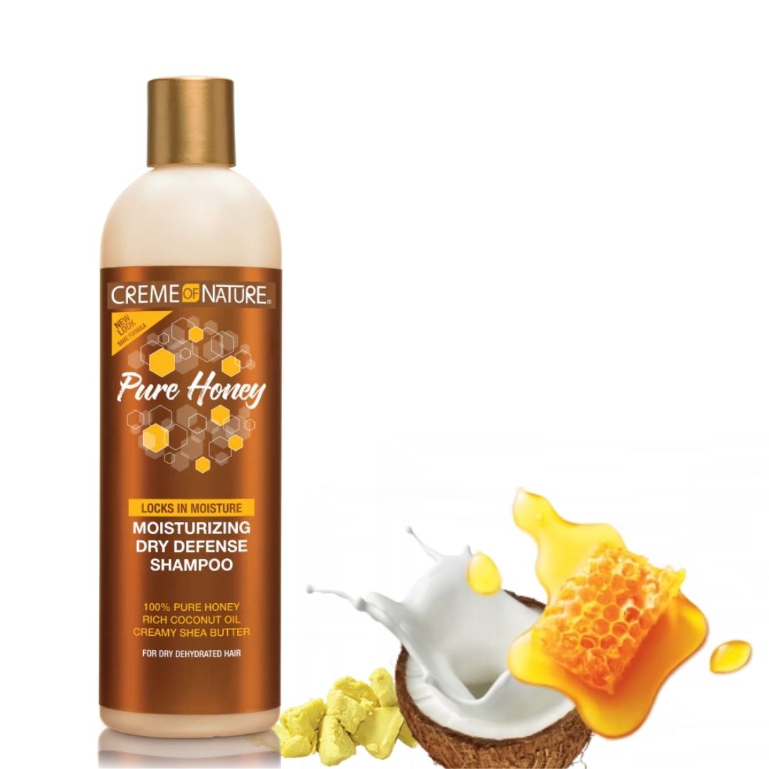 Crème of Nature Pure Honey Moisture Dry Defense Shampoo 12oz delivers a gentle yet effective cleanse for dry, brittle hair, infusing each strand with the hydrating power of pure honey. This shampoo restores moisture balance, strengthens weak hair, and protects against breakage, leaving hair soft, smooth, and resilient without stripping natural oils. Its rich lather envelops hair in nourishing care, making it perfect for daily moisture restoration.