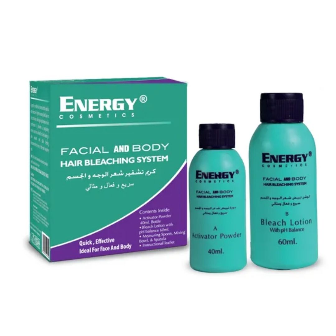 Energy Facial Bleaching System is a professional-grade facial bleaching kit designed to lighten dark spots, pigmentation, and uneven skin tone. Its gentle formulation ensures safe and effective application while nourishing and softening the skin. Regular use results in a brighter, even-toned, and radiant complexion with a smooth, polished finish.