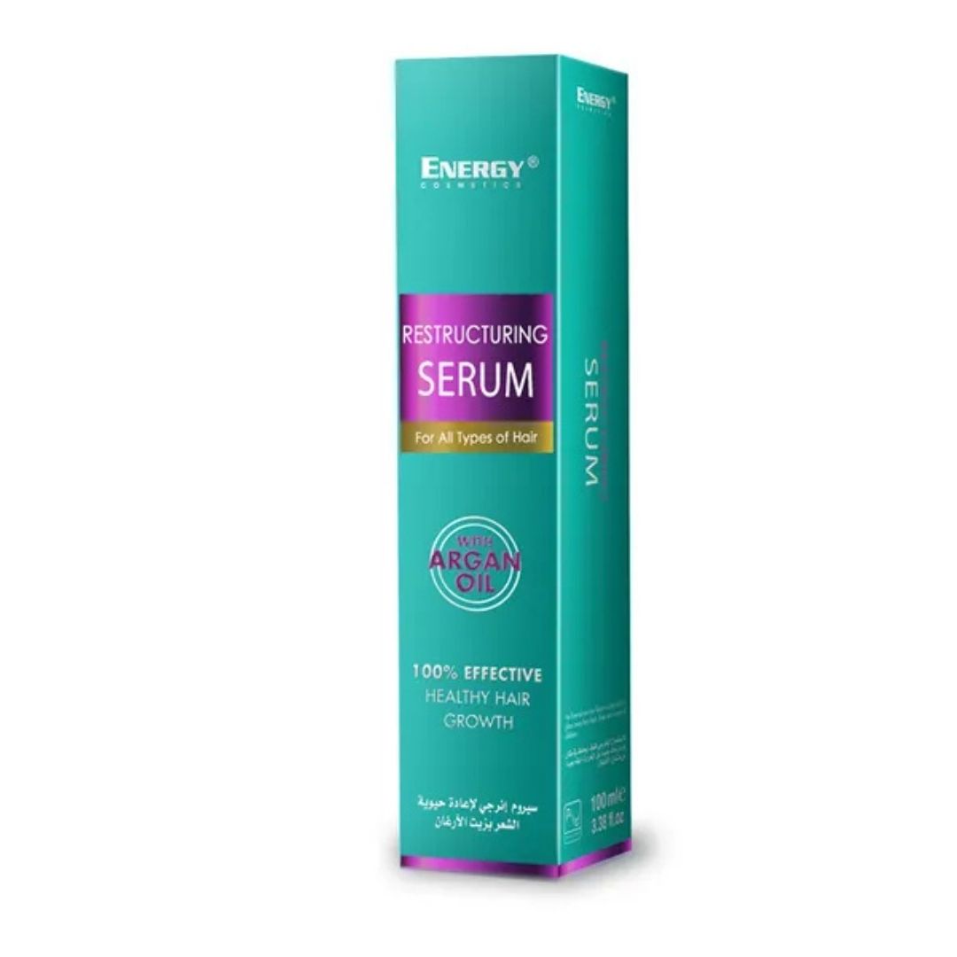 Energy Hair Serum Restruct with Argan Oil 60ml is a deeply nourishing serum designed to restore shine, softness, and manageability to dry or damaged hair. Enriched with 100% Pure Argan Oil, Vitamin E, and Hydrolyzed Silk Protein, it penetrates the hair shaft to repair split ends, reduce frizz, and strengthen strands from root to tip. Its lightweight, non-greasy formula leaves hair silky, vibrant, and resilient while protecting against heat styling and environmental stressors, promoting overall hair health and a polished, glossy finish.