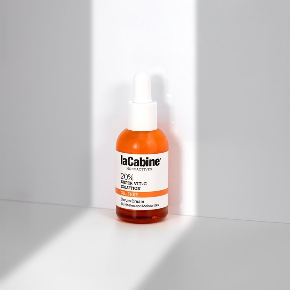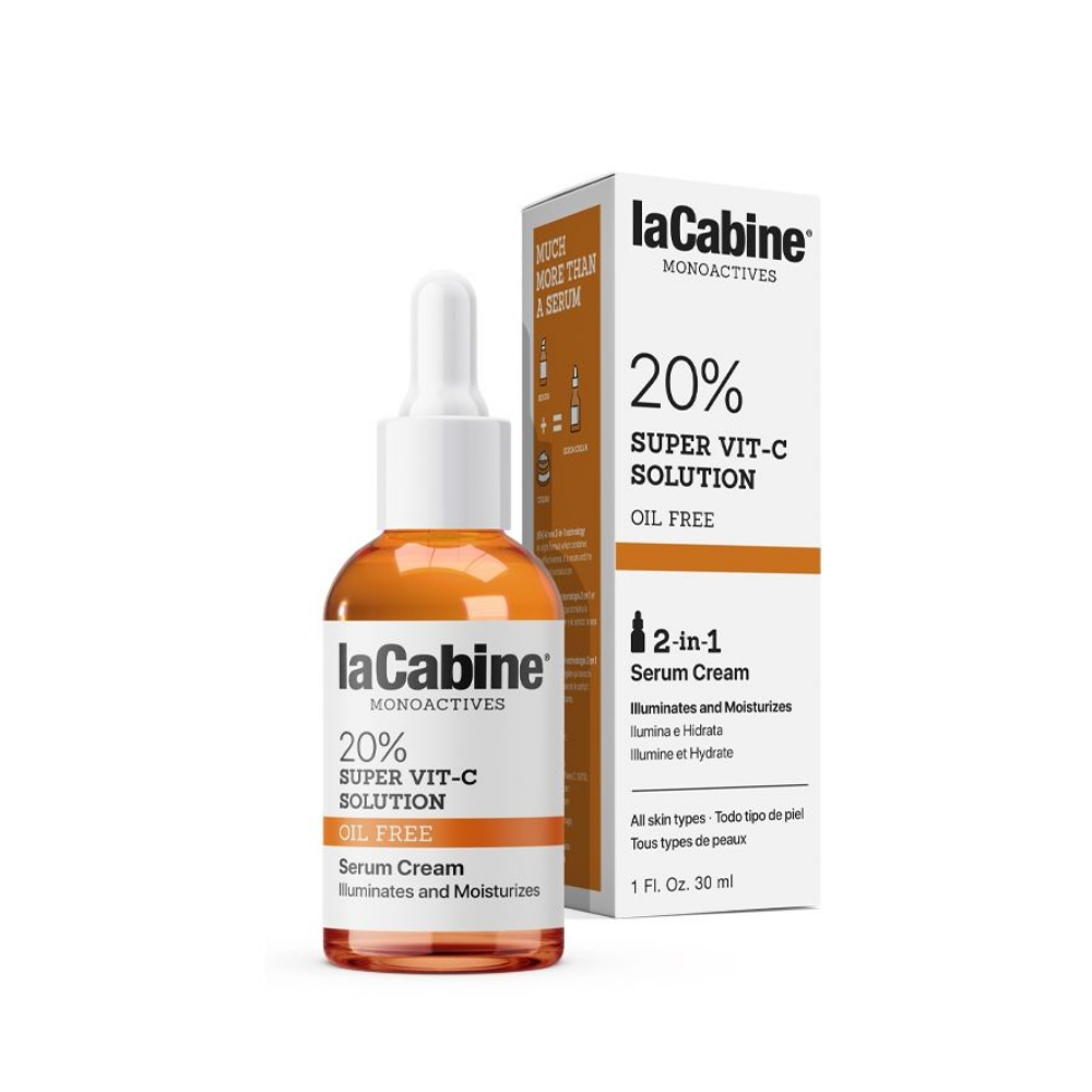 laCabine MonoActive 20% Super Vitamin C Serum Cream 30ml is a potent brightening and anti-aging treatment formulated to revitalize dull, tired, and uneven skin. Enriched with 20% stabilized vitamin C, hyaluronic acid, and peptides, it works to reduce dark spots, enhance radiance, and stimulate collagen synthesis for firmer, smoother skin. The serum-cream texture ensures deep penetration while providing lasting hydration, improving elasticity, and strengthening the skin barrier. Its antioxidant-rich formula protects against free radicals and environmental stressors, helping to prevent premature aging. With regular use, the complexion appears luminous, even-toned, plump, and visibly healthier with a youthful glow.